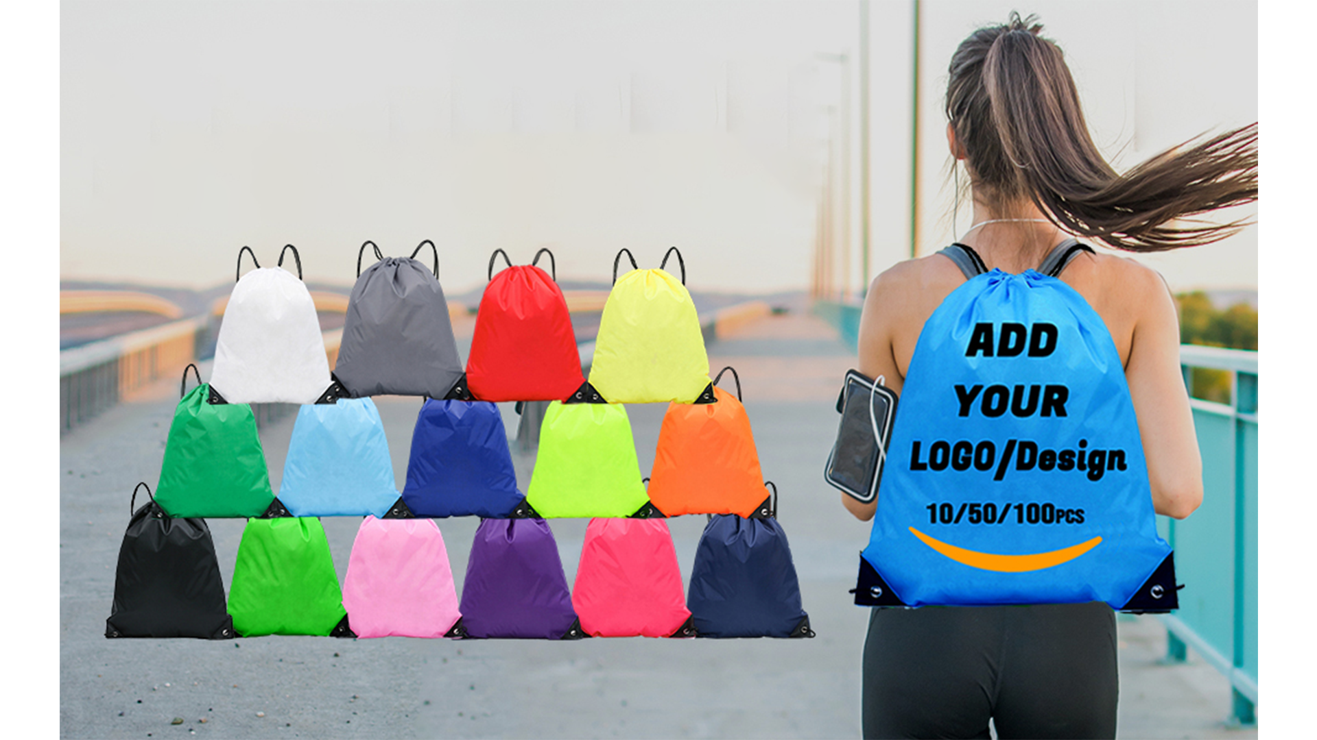 Custom Drawstring Backpack 10/50/100/200 Pcs Personalized Bulk Sport Draw String Bags with Logo, Text, Design, Customized Promotional Items